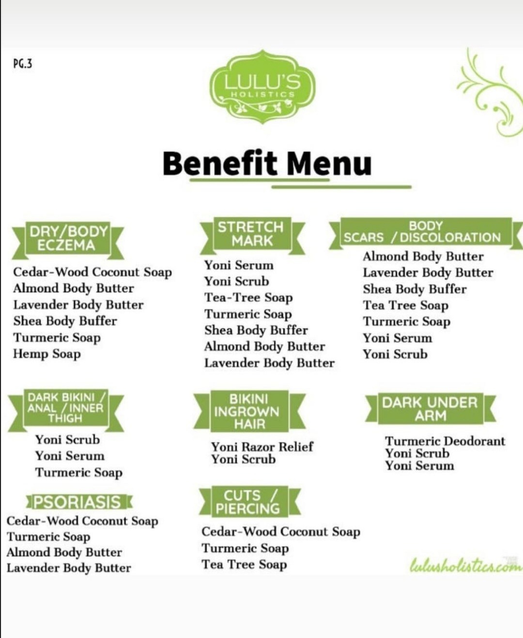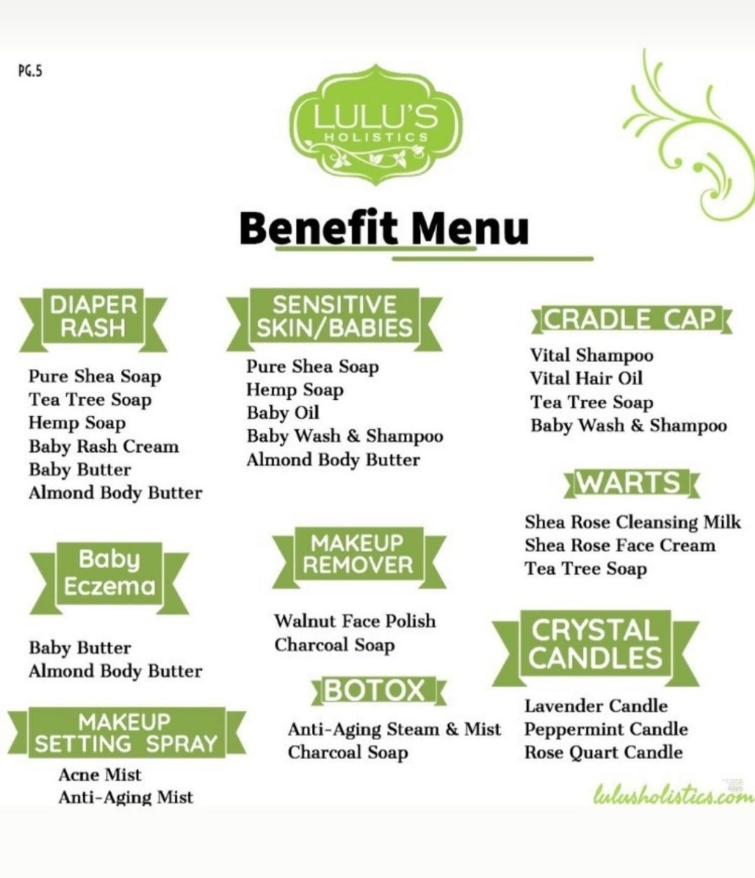 Lulu's Holistics products are handmade and manufactured by Jahnets Closet LLC. We use 100% UNREFINED butters and 100% pure essential oils along with certified natural and organic ingredients from our suppliers.